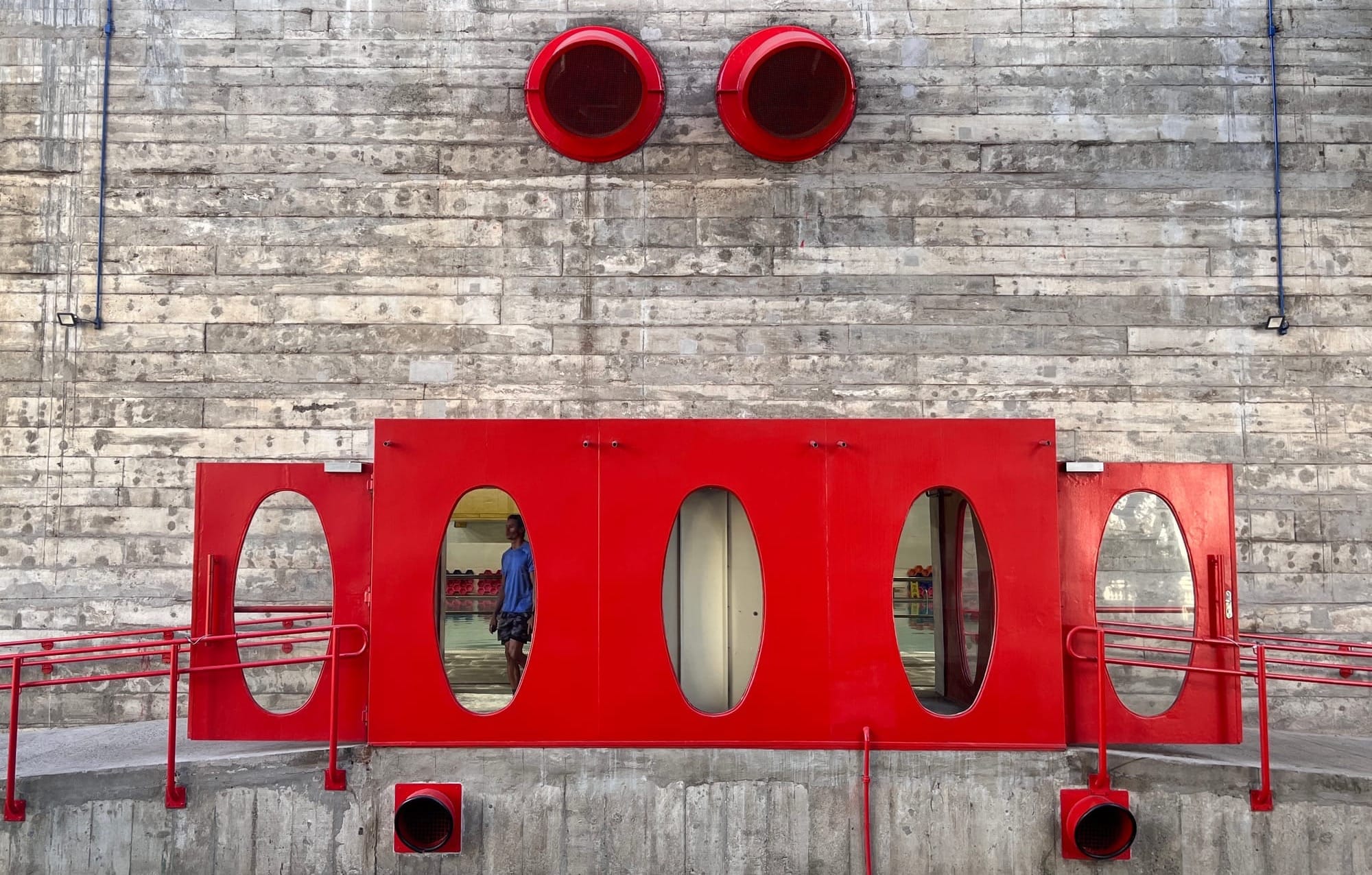 In general, Lina 's idea was to build unfinished spaces that would be completed in use. A humanist architecture that sought a dialogue between the modern and the popular. Or how to make the modern a popular meeting place . Thus, she restored and refurbished the factory buildings and warehouses and built new buildings incorporating two concrete towers connected by open-air pedestrian walkways, with high edges, without railings, at great heights. Walkways that impact, give vertigo, and awaken a certain death instinct in anyone who peers over the edge. The towers' windows and their shutters are emblematic: striking in a photograph; unforgettable in person. I remember them and something throbs strongly within me; it's the emotion of having been in places I'd only seen in books.
