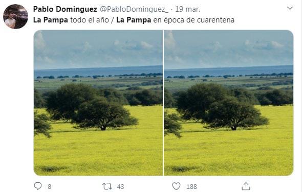 A few months before the pandemic, in mid-2019, a Twitter thread by a little-known user went viral for claiming “La Pampa doesn’t exist.” The tweet sparked dozens of replies and light features in mainstream outlets, and —somehow— turned the province into a meme. Ever since, any news involving the province tends to trigger the inevitable line: “La Pampa doesn’t exist.” That held true even during the pandemic, when for weeks we were one of the provinces with the fewest COVID-19 cases.