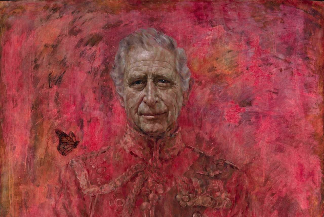 On September 8, 2022, Queen Elizabeth Alexandra Mary Windsor died. On May 6, 2023, her son Charles, Prince of Wales, becomes the current King of the United Kingdom and the Commonwealth realms in Westminster Abbey. A year later, his official portrait by Jonathan Yeo is unveiled. This is the one: