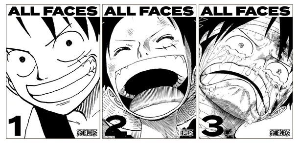 Inoue: –Lo que es increíble acerca del personaje de Luffy en One Piece es que sus ojos son puntos. Eso realmente es especial. Vos dijiste que "algo que es realmente bueno lo sigue siendo sin añadirle nada más", y creo que esa frase es muy representativa de tu personalidad. Tenés una fe inquebrantable en tu trabajo, y eso se refleja en la manera en la que dibujás esos ojos negros. Apuesto a que el editor y todos los que trabajaban con vos te dijeron que pusieses algo de brillo en las pupilas, o que las rodeases con un círculo, pero no cediste ni un ápice.