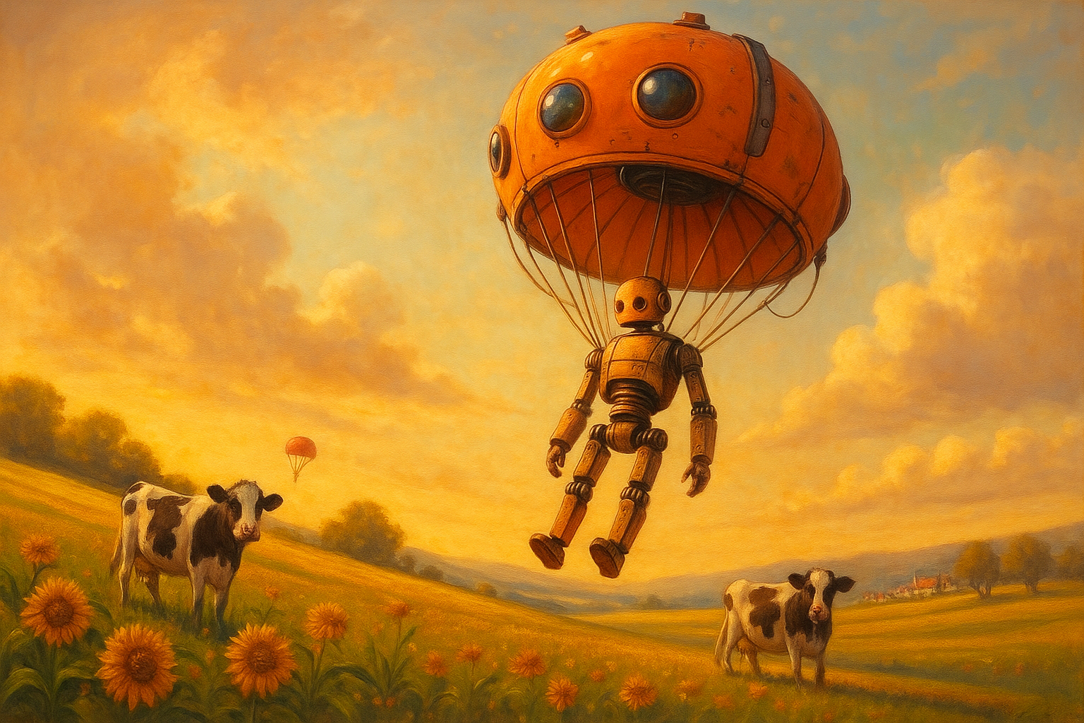 Es un paseo. Como la aerosilla, pero con un pedazo de paracaídas encima. Como una montaña rusa, pero en ralentí. Es un paseíto que trae una sensación muy linda de frescura, y de una libertad que solo provee el aceptarse pequeño. En el medio vas viendo campos, más campos, arroyos, manadas de animales, animaladas en las rutas, otros campos, algún choque en cadena, perros culeando en el campo.