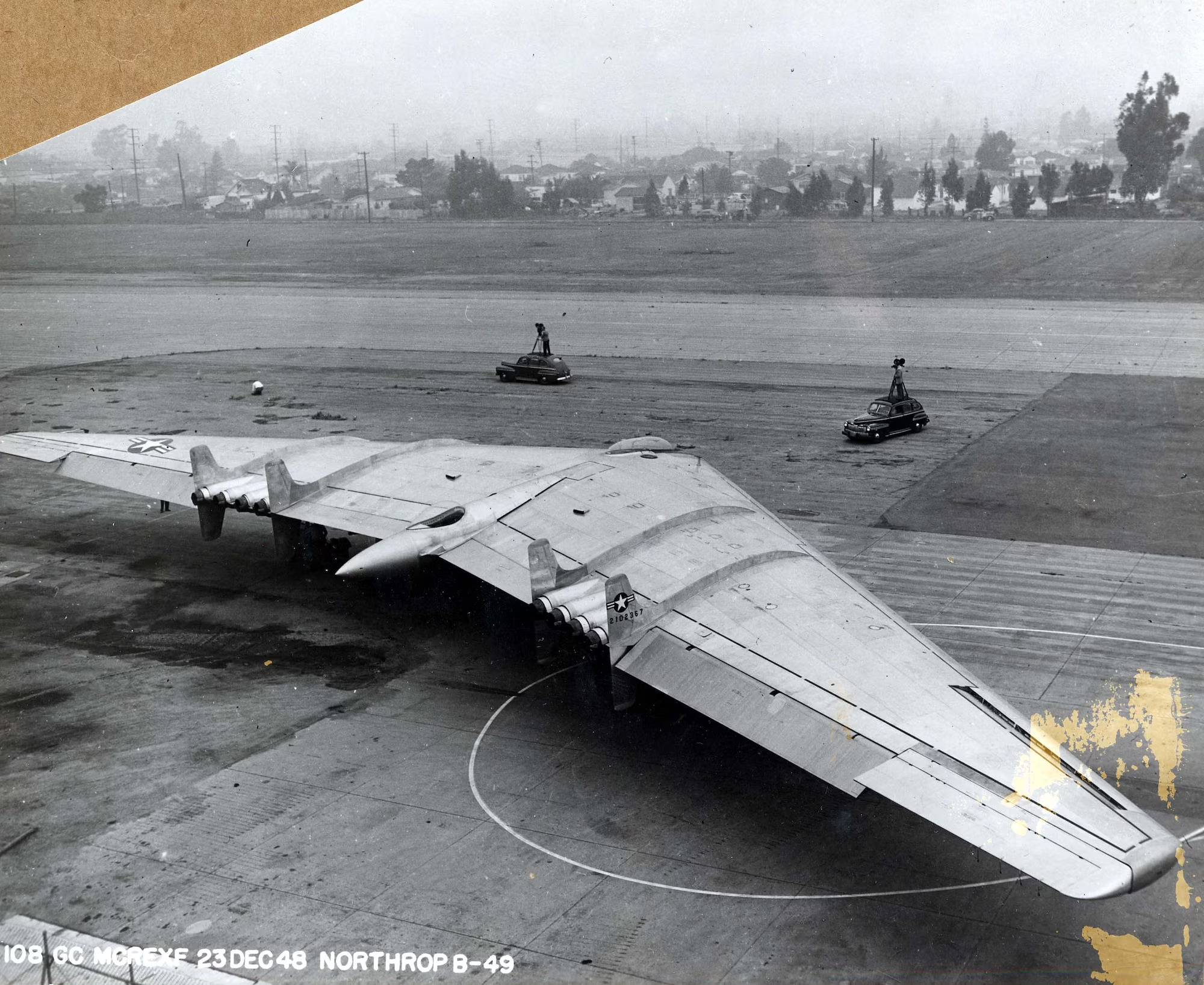 El diseño de ala volante del B-2 encuentra un paralelo histórico en el Horten Ho 229, un prototipo nazi desarrollado por los hermanos Reimar y Walter Horten en los años finales de la Segunda Guerra Mundial. Este avión experimental alemán, con propulsión a reacción y perfil furtivo, fue incautado por las fuerzas aliadas.