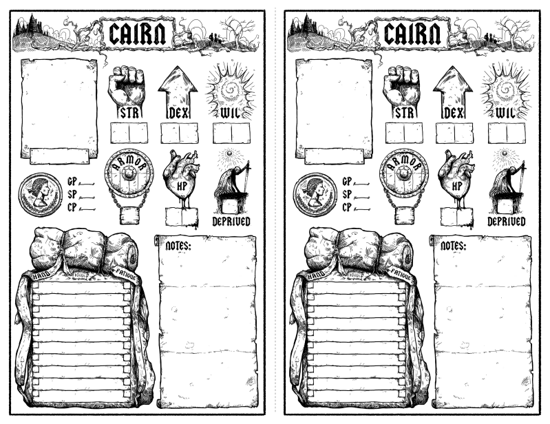 Segundo, Cairn destaca por ser un juego narrativamente centrado. Esto significa que lo más importante es, siempre, que la historia tenga sentido y se desarrolle de forma interesante. Sus aspectos mecánicos (cuándo tirar los dados, el sistema de combate, su inventario) son excusas para que la historia avance y los jugadores puedan interactuar con el mundo.