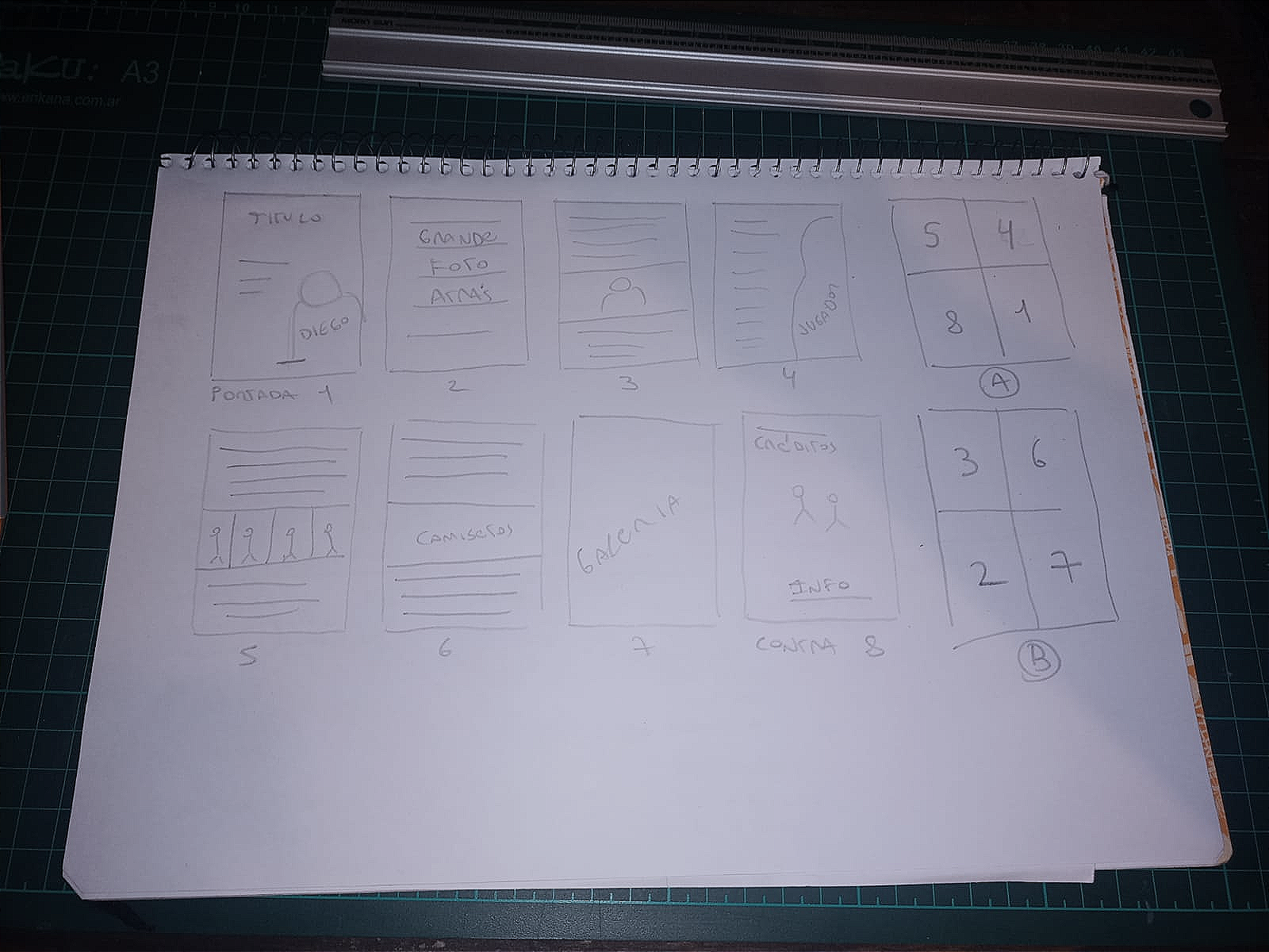 Ya tenemos el formato y sabemos que vamos a pasar el texto de Lucho a una A4 con 6 páginas de contenido + portada y contraportada. Para hacerlo interesante, voy a usar algunas cosas hechas a mano para organizar la nota en las páginas. Y para terminar de armar, diseñar y acomodar el texto, podemos usar una herramienta digital que en mi caso será Photoshop, porque todavía no aprendí a usar InDesign, la app para trabajar diseño editorial de Adobe.