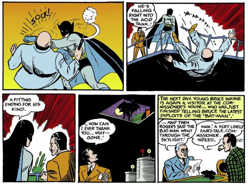 El paralelismo con El Zorro es gigantesco; tanto que termina siendo parte del lore del personaje porque es la película que ve Bruce con sus padres antes del asesinato más importante de la historia del cómic. En su primera aparición, Batman se enfrenta al crimen organizado de Gotham, lucha que sería recurrente en toda su historia.