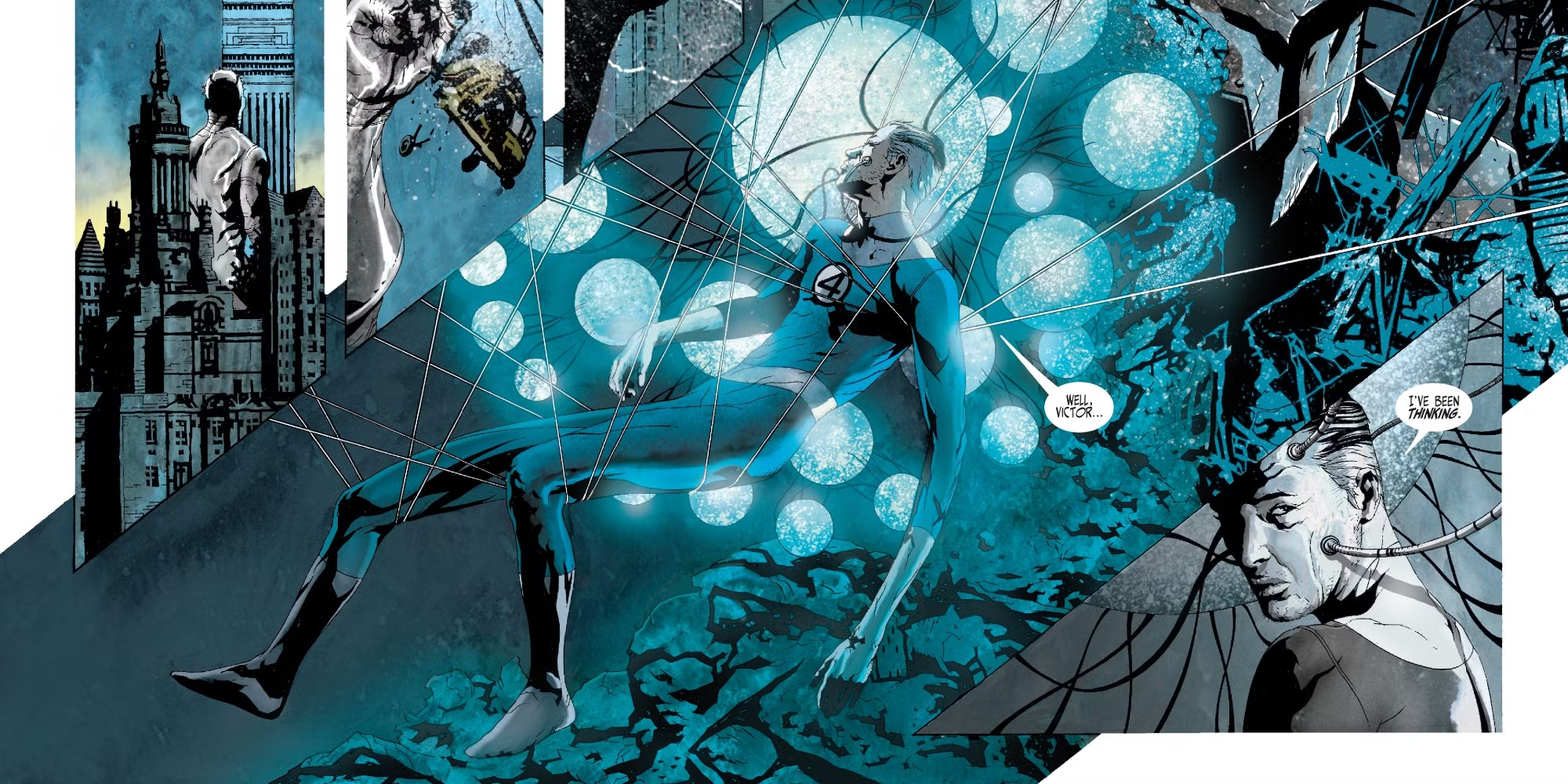 Si llegaste acá es porque realmente querés a este cuarteto, porque es una lectura de nivel avanzado. Jonathan Hickman es un guionista increíble que en su etapa con Los 4 Fantásticos decidió romper todos los límites de lo que conocíamos y creó muchísimo nuevo lore que fue muy bien recibido por los fans. En su run de más de 3 años, Reed decide crear la Future Foundation, un grupo dedicado a resolver los problemas más complejos del universo, ampliando la familia y el eje colaborativo de Los 4 Fantásticos.