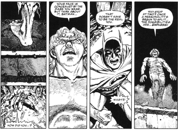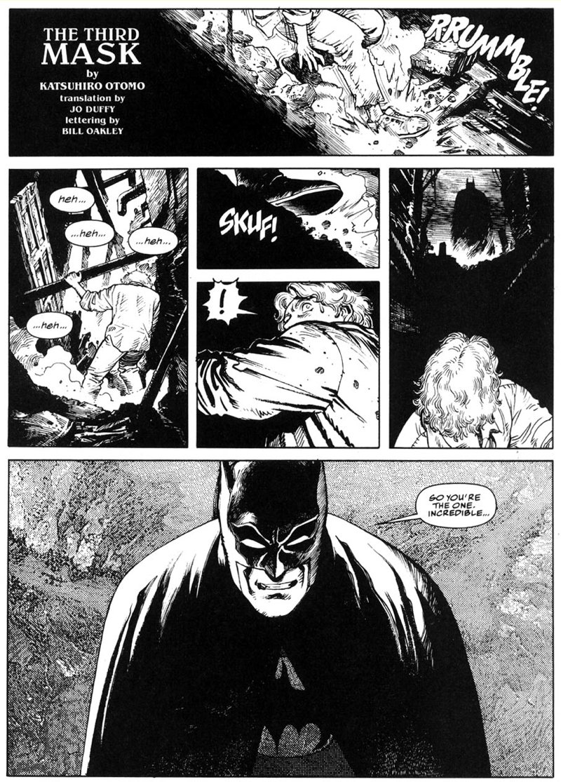 En sólo 5 páginas, Ōtomo rompe a Batman. Creo que hasta logra un nuevo récord en destrucción de un personaje: ni Moore lo hizo tan rápido. En esta minihistoria, Batman enfrenta a un asesino serial con múltiples personalidades que impacta a Bruce con una frase: "Una vez que una personalidad se separa, las posibilidades son infinitas". El detalle y amor por la historieta de cada viñeta hacen de esta historia una de las favoritas de todos en la antología Black and White.