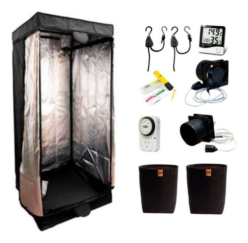 No hay mucho misterio con las carpas. Armás un paralelepípedo con cañitos para darle forma a la estructura y lo recubrís con la lona, que tiene refractario por dentro, cierre al frente y dos tomas de aire. En esas bocas se ponen dos coolers de 10 centímetros, como los de computadora. Uno ingresando aire fresco a la carpa por el de abajo, que queda a unos 30 centímetros del piso, y el otro extrayendo el aire caliente por arriba. Por unos $30.000 más venden el par armado y cableado, ya con el transformador y todo.