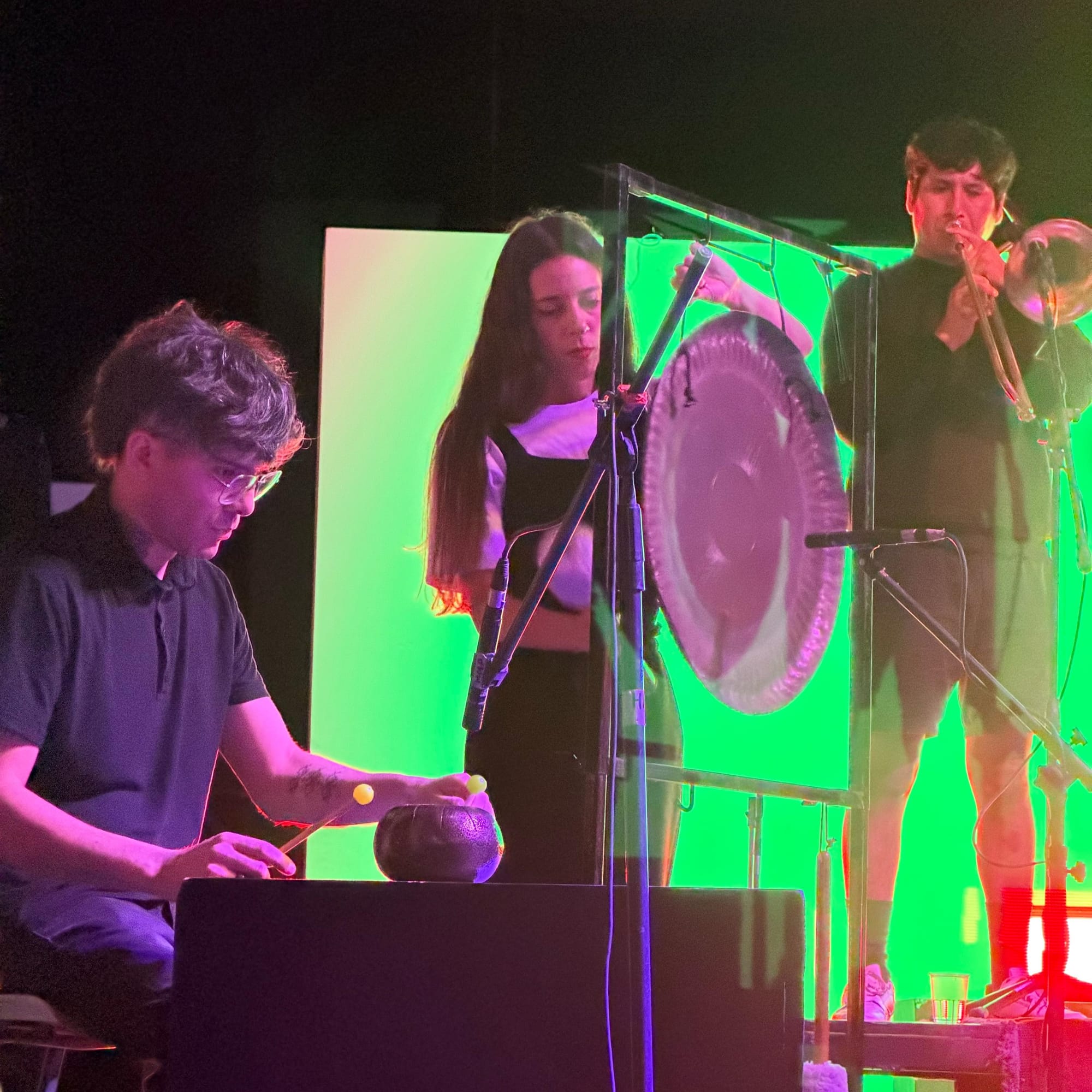 Pero a Emi no le preocupan mucho estas escaseces. Además de su lado académico como intérprete de contrabajo, tiene otro que, para él, se encuentra en relación estrecha con el tipo de música que destaca en las propuestas que agita: "Yo como que tengo otro lado que viene más desde el punk, que es algo que me identifica no sólo musicalmente sino como una cuestión de actitud, de hacerlo unx mismx. Y de una cuestión más política, se podría decir, en el sentido de que considero el arte y la música como una forma de expresión que, para mí, tiene que ser combativa de alguna manera contra lo que no está bien. Pero no sólo desde una posición de la queja, sino desde una activación. Creo que, justamente, el noise, el arte sonoro y la improvisación libre son el nuevo punk, porque con nada, con un pedazo de alambre, con un instrumento fabricado con tus propias manos, podés hacer música. Y con lo que tengas a mano podés generar sonidos que pueden atravesar al otro y producir algo que ni vos te imaginás."
