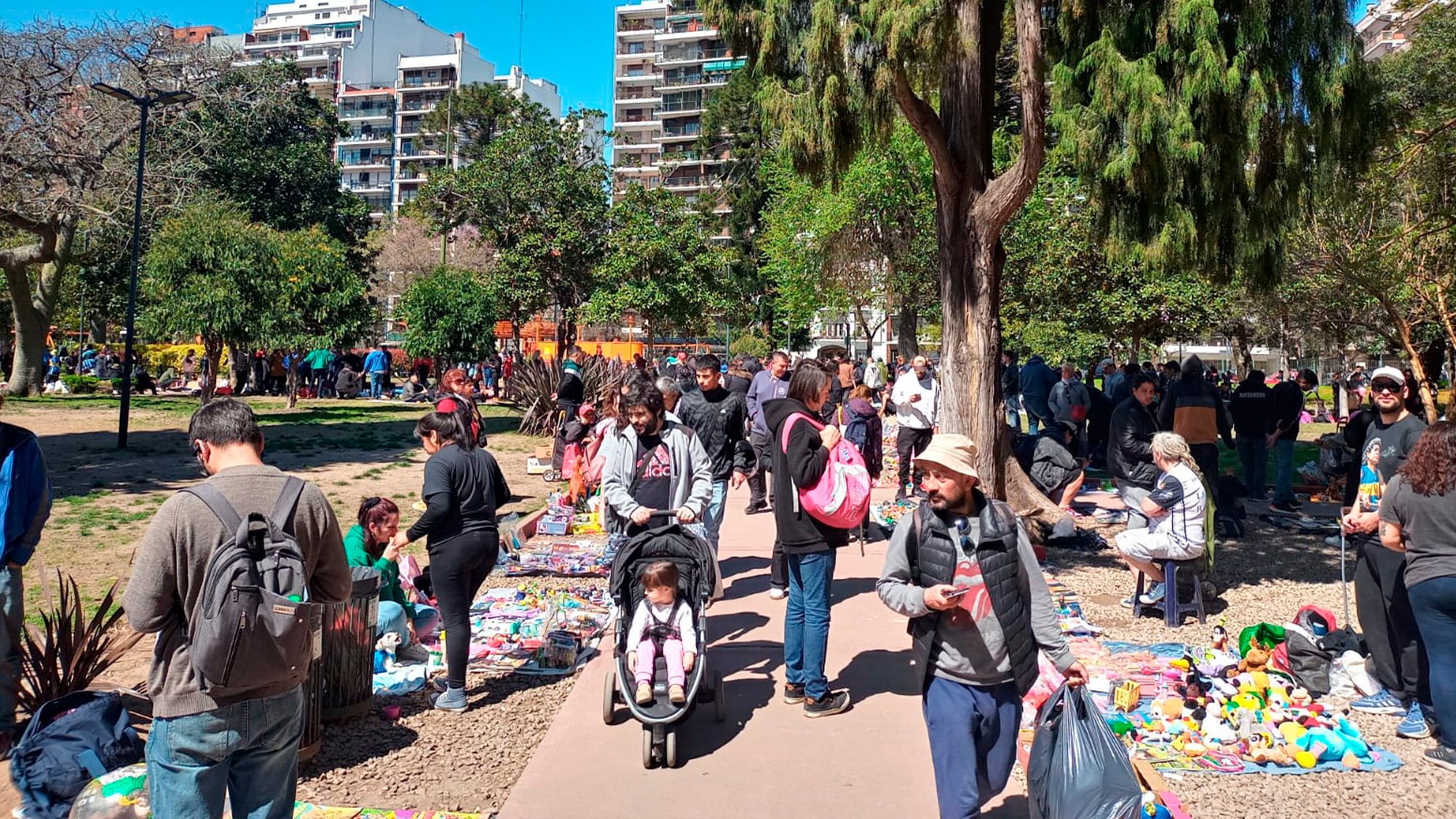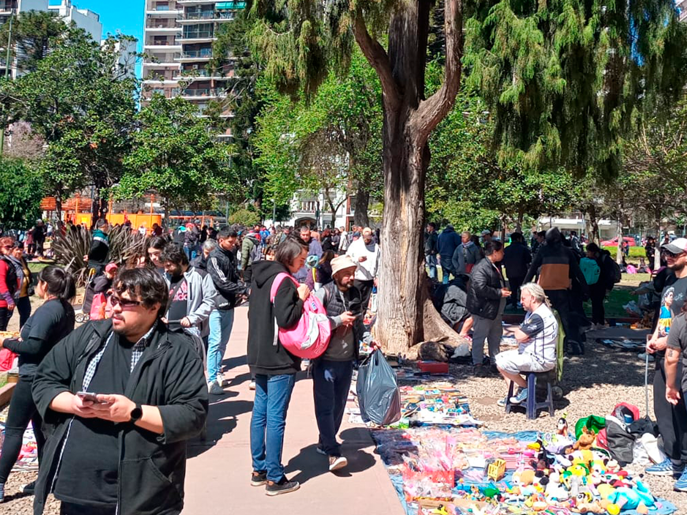 Ya desde 2023, la zona de hobbistas empezó a tener esta otra feria de manteros que solo funciona de 8 a 14 (cada vez un poquito más tarde, en realidad), pero fue con los duros golpes de la inflación de mid 2023 en adelante cuando los manteros empezaron a ganar territorio y una vez más, powered by la crisis que tenemos encima cual maldición vampírica, crecieron hasta ocupar, a septiembre de 2024, más de un cuarto del Parque. Suena a 2001 otra vez.