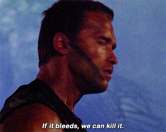 En Depredador, el equipo conducido en la selva por Arnold Schwarzenegger se enfrenta a un enemigo desconocido que parece estar siempre adelantado y en ventaja. Hasta que en una escena donde talan un bosque a balazos encuentran un rastro de sangre del misterioso alienígena. Arnold se despacha una de sus frases icónicas para toda la posteridad: "Si sangra, podemos matarlo".