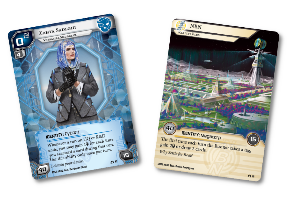 Fantasy Flight planteó muy claramente desde el primer anuncio que, si bien iban a trabajar junto a Richard Garfield y la gente de WotC, su intención no era reimprimir el juego original sino “reimaginarlo”, empezando por el pase al formato LCG. Así planteaban las posibilidades de este cambio: “Cuando eliminás el concepto de rareza de las cartas, ya no te ves obligado a diseñar versiones más poderosas que hacen lo mismo que sus contrapartes comunes, pero mejor. Podés deshacerte del exceso de cartas que cumplen casi la misma función. En su lugar, el enfoque puede desplazarse hacia la variedad de herramientas disponibles, asegurando que los jugadores tengan un amplio abanico de opciones para explorar en la creación de mazos”. Para grata sorpresa de los fans más escépticos, el approach de Fantasy Flight fue más bien “si no está roto, no lo arregles”. Las prioridades fueron simplificar algunas reglas, refinar las condiciones de deckbuilding (incluyendo un límite de 3 copias por carta) y, por supuesto, retematizar todo al universo Android, inventando en el proceso a sus corporaciones, personajes y lugares más icónicos. Mientras tanto, en lo que respecta a las cartas, muchas fueron copiadas exactamente de la versión de los noventa. En lo que sí innovaron fue en inventar 7 facciones (el equivalente a los colores de Magic) y agregar identidades: un personaje (en el caso del runner) o una faceta de una corporación que te da un poder único durante toda la partida. Así nacieron nombres icónicos del juego como la Runner Kate "Mac" McCaffrey o las corpos Haas-Bioroid, Jinteki, NBN y Weyland.