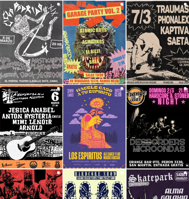 "Es un trabajo autogestivo y bastante anárquico, buscamos nuestro propio sistema dónde recibimos flyers y hacemos base de datos con lo que nos van pasando y de manera gratuita vamos dándole difusión", cuenta Mar. Ella y Lau transitan el under también como productoras culturales. Y comentan que, más allá de las dificultades generadas por la crisis económica, las negociaciones para tocar y las bombas nucleares que fueron Cromañón y la pandemia, siguen siendo las bandas del under las que generan y gestionan muchas de las escenas que nutren estos espacios culturales.