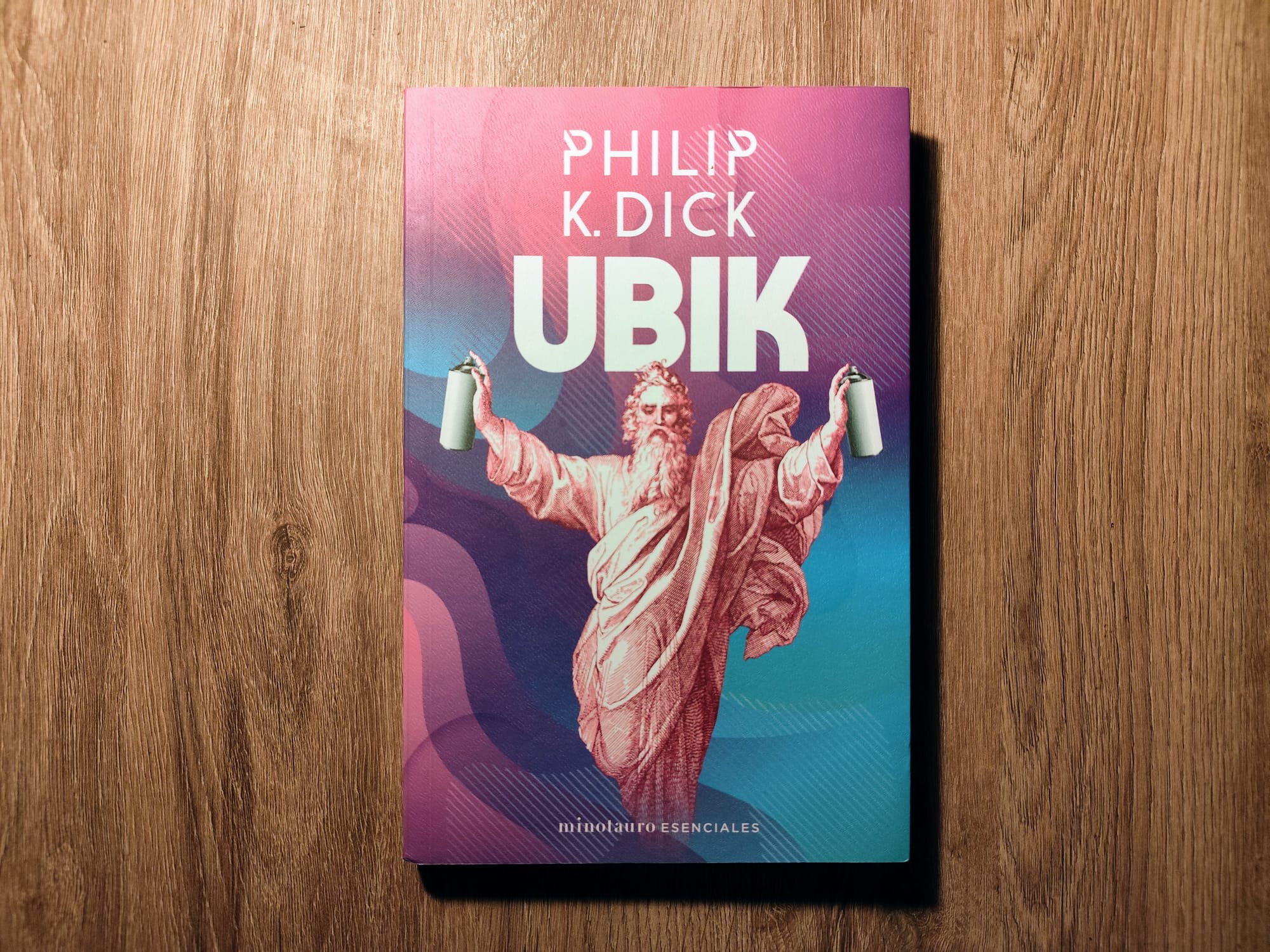 Ubik es una de las tres novelas "metafísicas" de Phillip K. Dick, junto con El hombre en el castillo y ¿Sueñan los androides con ovejas eléctricas?, en donde el concepto de la realidad misma es puesto en jaque sistemáticamente por los personajes, al nunca poder terminar de definir de qué cara de la moneda se encuentran. Si son reales o son parte de algún tipo de simulacro. En el caso de Ubik, el mundo parece entrar en una especie de degradación de las cosas. Los objetos retroceden en el tiempo, todo envejece y se convierte en una versión antigua de lo que era. En ese escenario, la única salvación parece ser un producto en aerosol que titula a la novela, Ubik. Recomiendo con especial énfasis la lectura de esta joya.