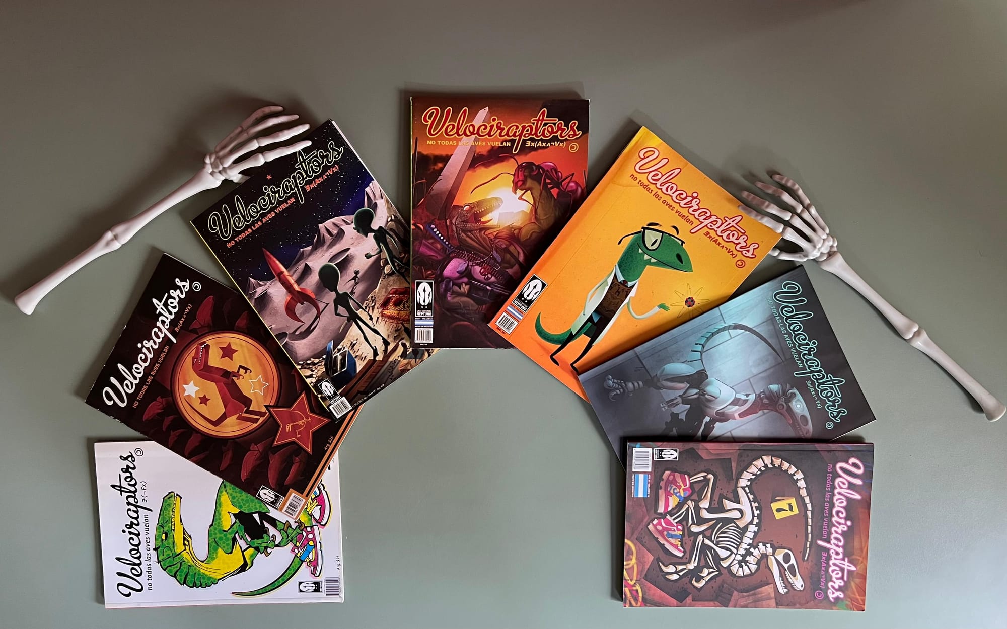 Revista Velociraptors fue una publicación independiente que, con un tono irreverente y descontracturado, reflexionó sobre los cruces entre la naturaleza, la ciencia, la tecnología y lo extraño. Fue editada en Argentina, más o menos periódicamente, entre los años 2012 y 2023, por la casa editorial Neptuno. Y de a poco fue ganando algo de notoriedad dentro del circuito cultural alternativo, hasta ser elevada a la categoría de revista de “culto”, sobre todo entre artistas, escritores y personajes del under porteño. Circuló en tiradas chicas y fue distribuida en kioscos de diarios, ferias de artes impresas, algunas librerías, galerías de arte y centros culturales.