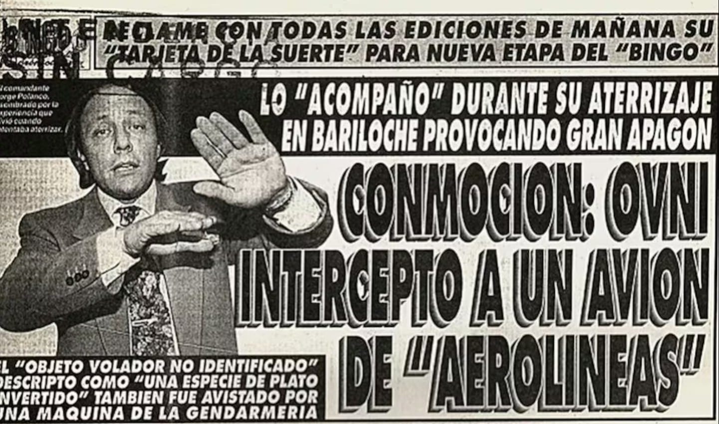 Otro caso emblemático es el del piloto Jorge Polanco, de Aerolíneas Argentinas, que en 1995 fue seguido durante 17 minutos por un objeto luminoso mientras se preparaba para aterrizar en Bariloche. Este es, quizá, el más llamativo de todos, porque el hecho fue confirmado por torre de control y testigos en tierra. "Era un plato de unos treinta metros de diámetro que estaría a unos 50 metros del avión. Me acompañó en la etapa de descenso hasta el aeropuerto. ¿Mi primera reacción? '¡¿Qué carajo es esto, qué carajo es esto?!'. Pero mis colaboradores no respondían, sólo lloraban del miedo".