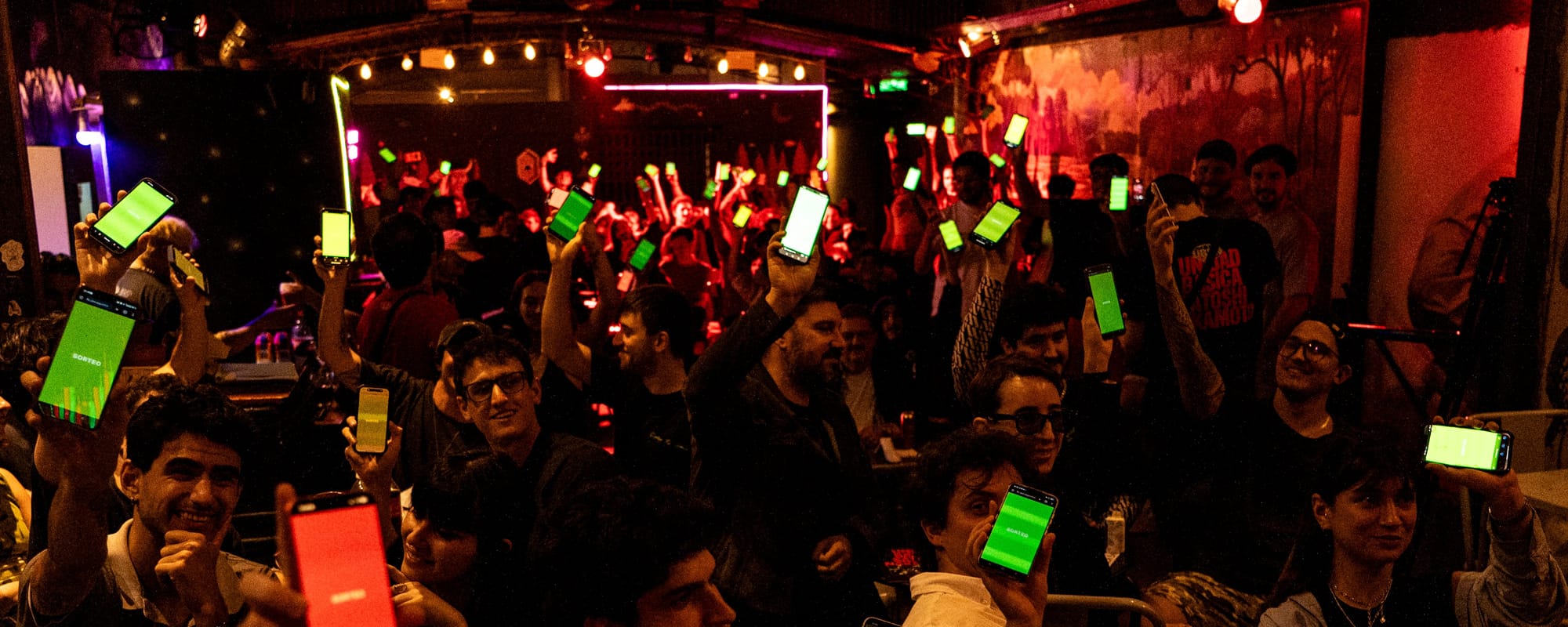 El sistema de sorteos estuvo ligado a la app. En momentos específicos, tu pantalla quedaba 'hackeada' por colores alternando entre rojo y verde hasta que solo un celular quedara prendido. Durante el diseño pensamos permanentemente en cómo hacer que el celular sea tu arma, pero tu mirada estuviera obligada a estar conectada con el ambiente.