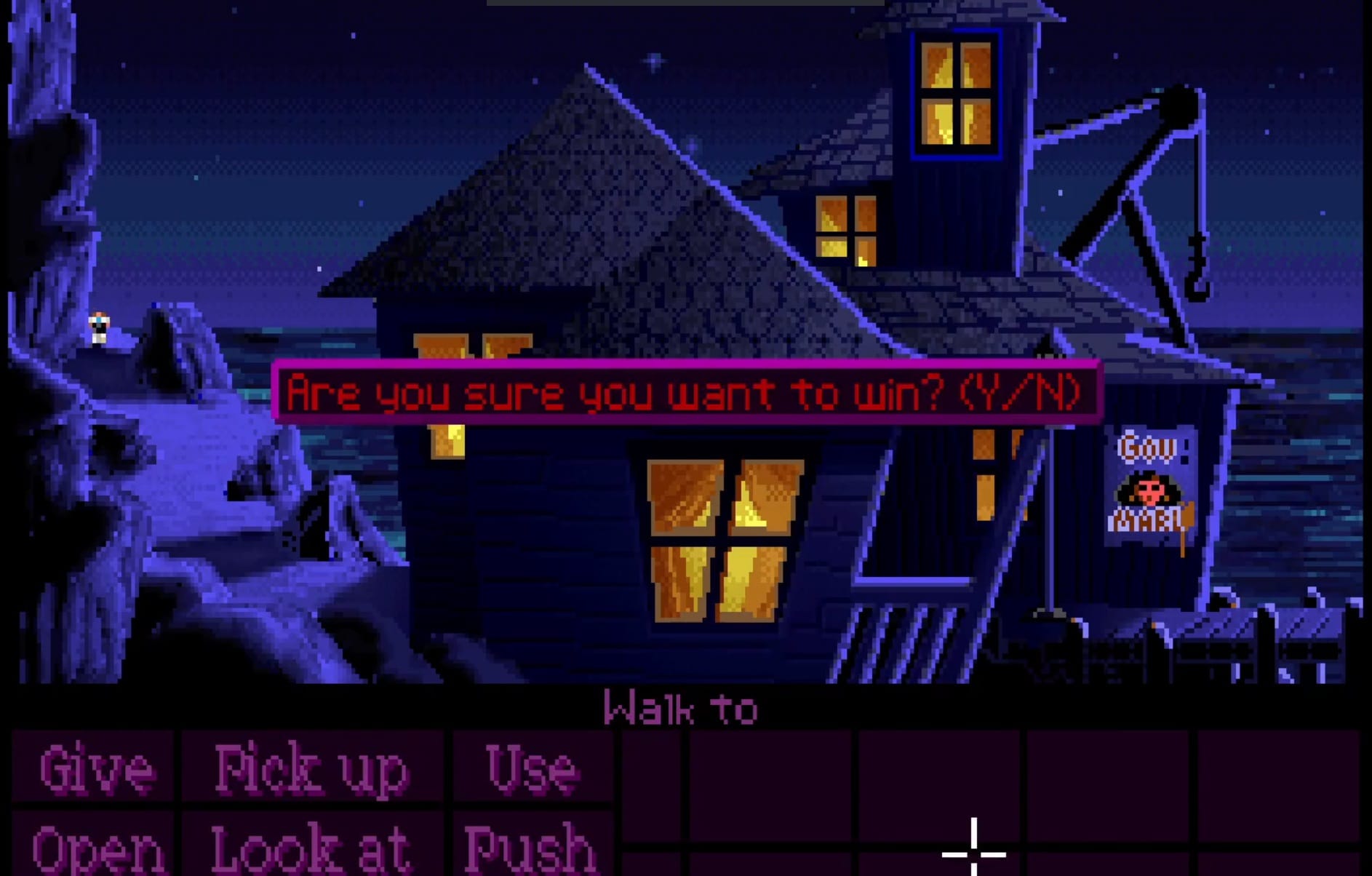 En 1990 salió uno de los videojuegos más queridos por los jugadores de DOS, The Secret of Monkey Island. Una aventura gráfica con más historia y puzles que despliegues de habilidad gamer. Sin ponernos a hablar del juego, que amerita una nota aparte, el primer Monkey Island tiene un detalle curioso: en cualquier momento, si tocás Ctrl + W, te pregunta si "querés ganar". Si tocás "Sí", te dice "Tú ganas" y que hiciste 800 de 800 puntos. El juego no tiene sistema de puntos, es todo chamuyo. Te muestra una versión alterada de los créditos, medio en joda, y tenés que reiniciar la compu para salir. Las risas son muchísimas, la satisfacción por haber "ganado", cero.
