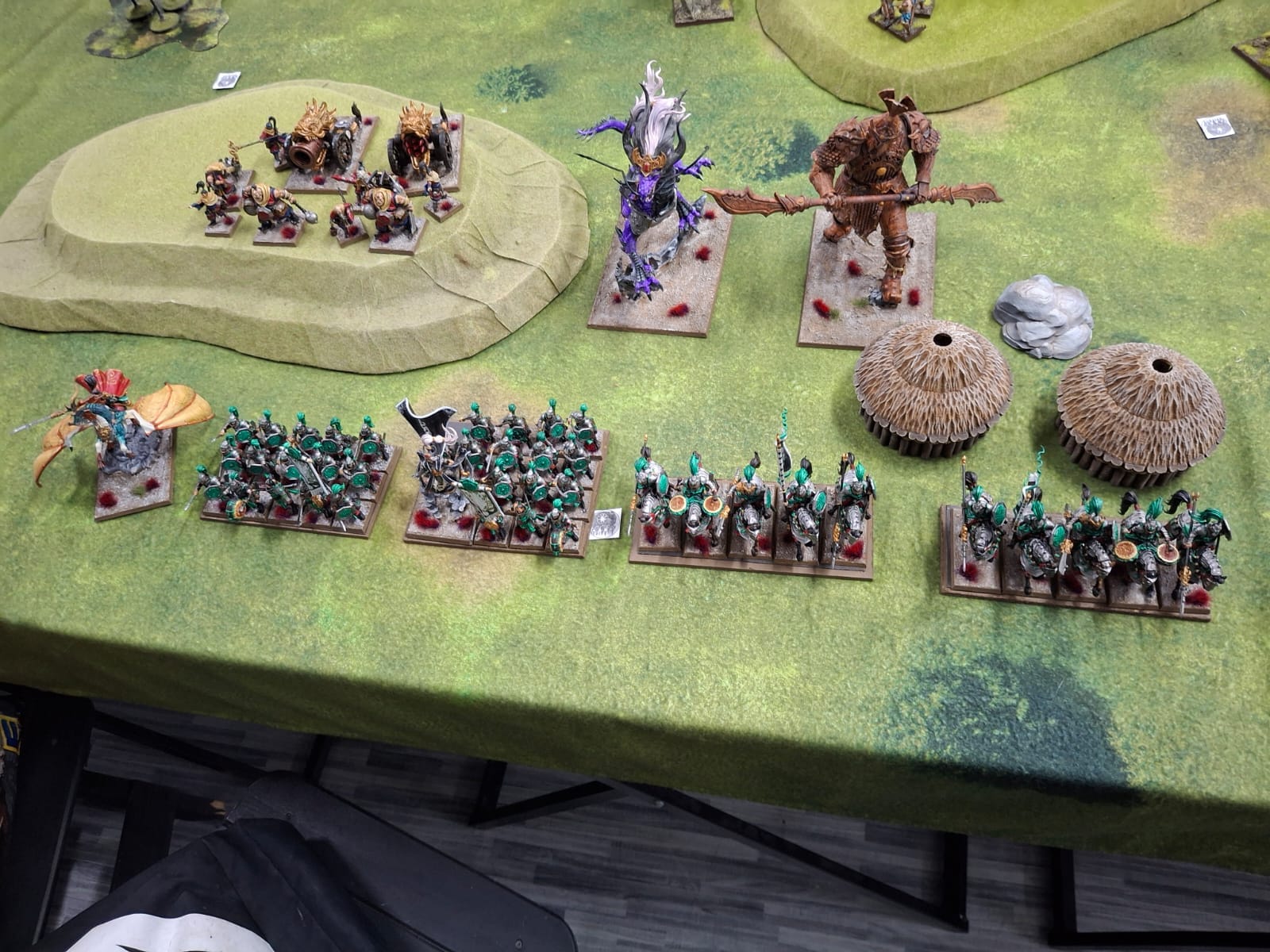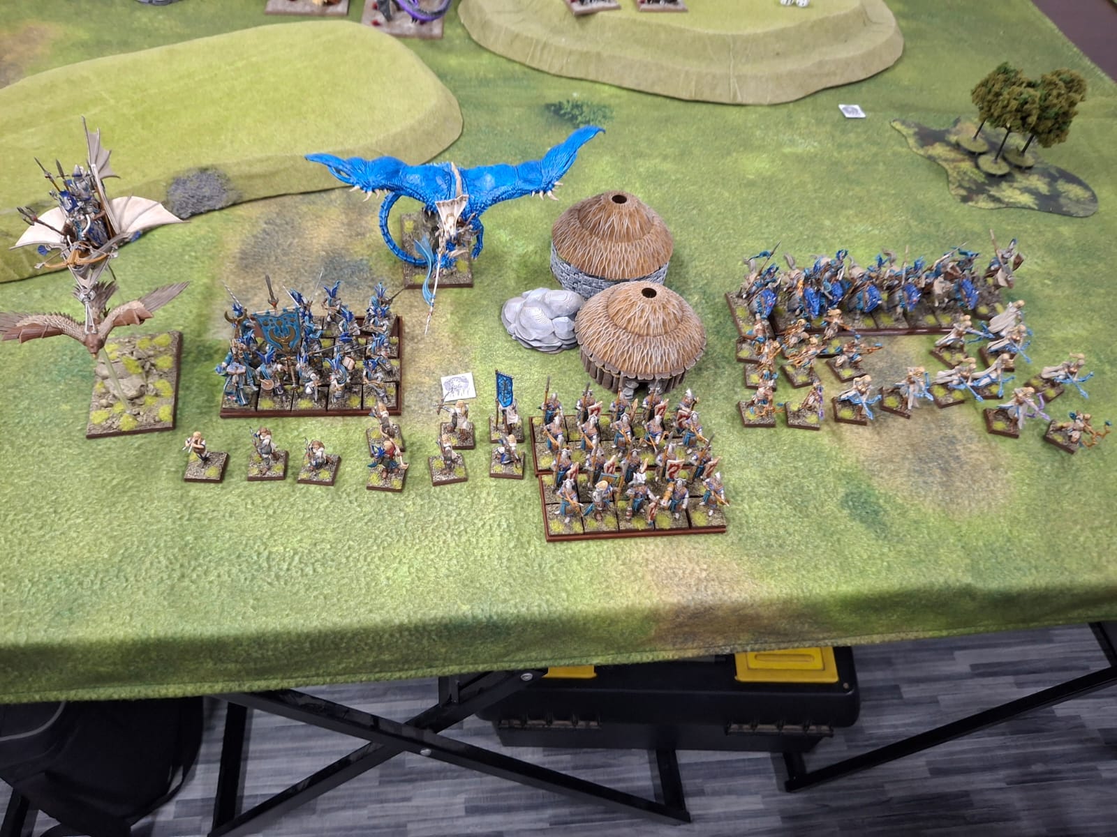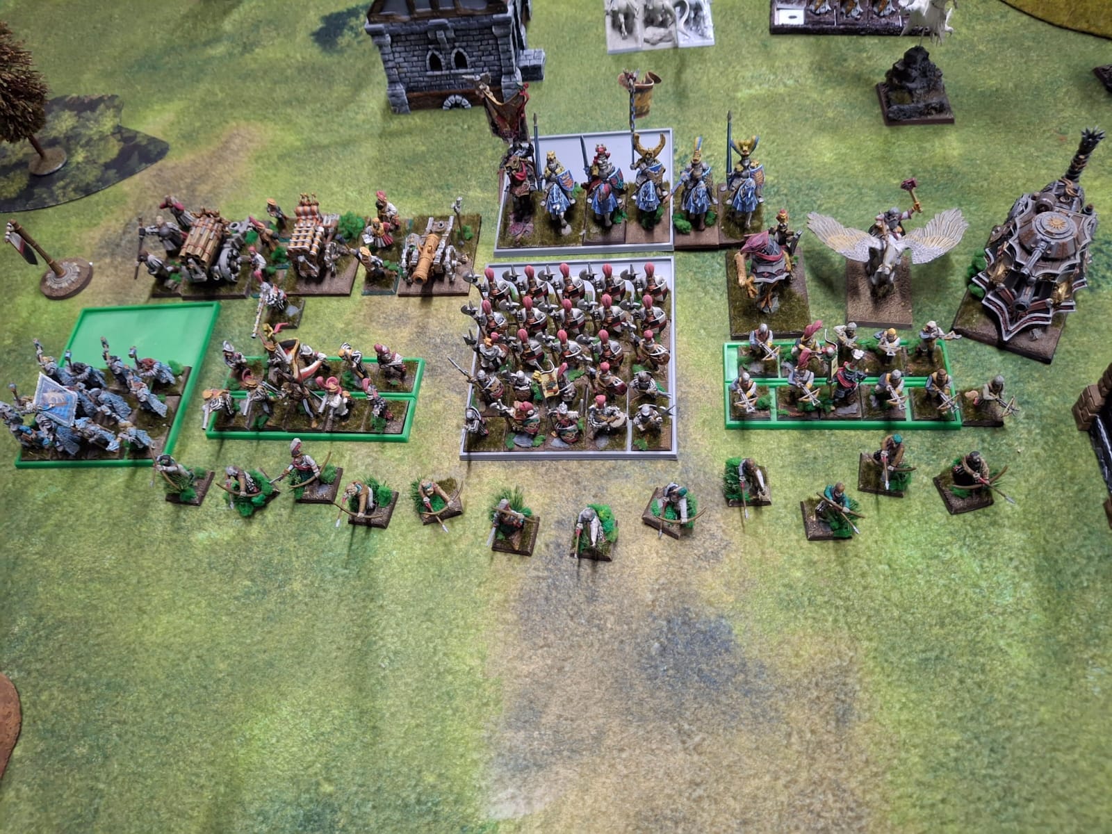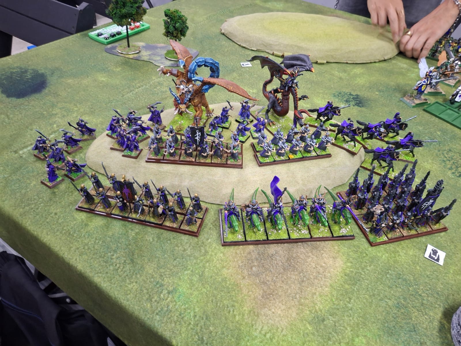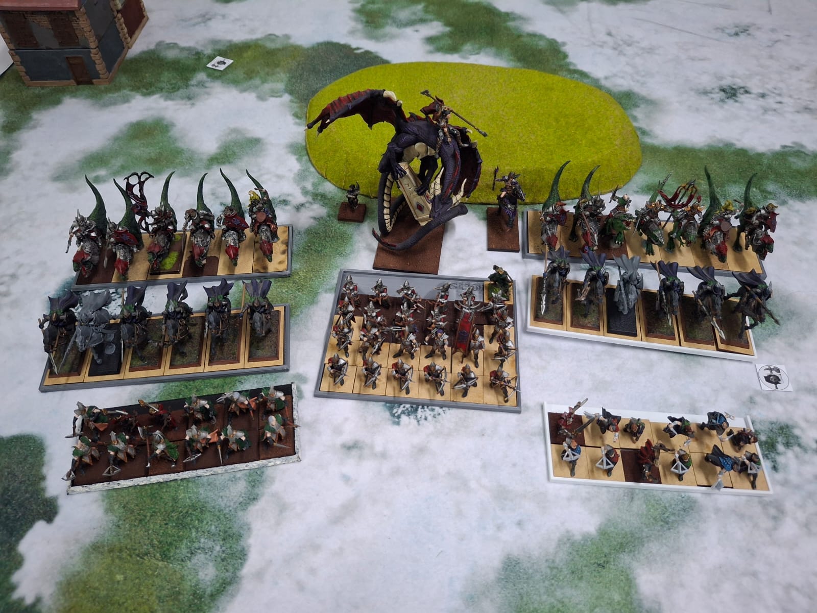 El príncipe elfo montado en el dragón embate contra mi estegadón. Mi oponente tira cuatro dados: en uno de ellos saca un seis. El estegadón muere atravesado por la espada exterminadora de monstruos. Una bola de fuego de su hechicera diezma a mis Kroxigors, bestias del tamaño de un troll, equipadas con martillos a dos manos. De poco les sirven, no llegan a enfrentar a ningún enemigo en combate. Las flechas siguen cayendo sobre el resto de mis tropas. Ya ni siquiera se trata de empatar, sino de no perder por goleada.