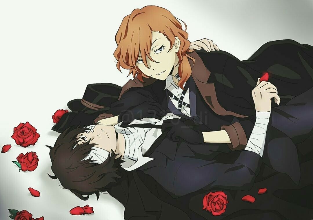 #2 Dazai Osamu x Nakahara Chuuya en Bungō Stray Dogs. Si bien dejaron de emitir este anime en 2023, aún sus fans siguen generando thirst traps con este ship. Le mando un saludo a mis compañeras de japonés, que sé que contribuyen con este top.